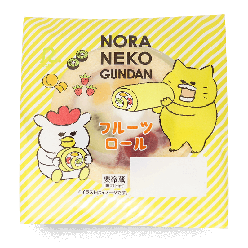 ふわふわのロール生地の中に、自家炊きカスタードクリームとホイップクリームを絞り、黄桃ダイス、キウイフルーツ、苺ダイス入りソースをトッピングしました。