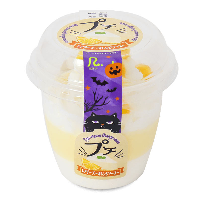 ミルクムースとチーズムースに、ヨーグルトチーズホイップクリームとつぶつぶ食感のオレンジソースをトッピングしました。