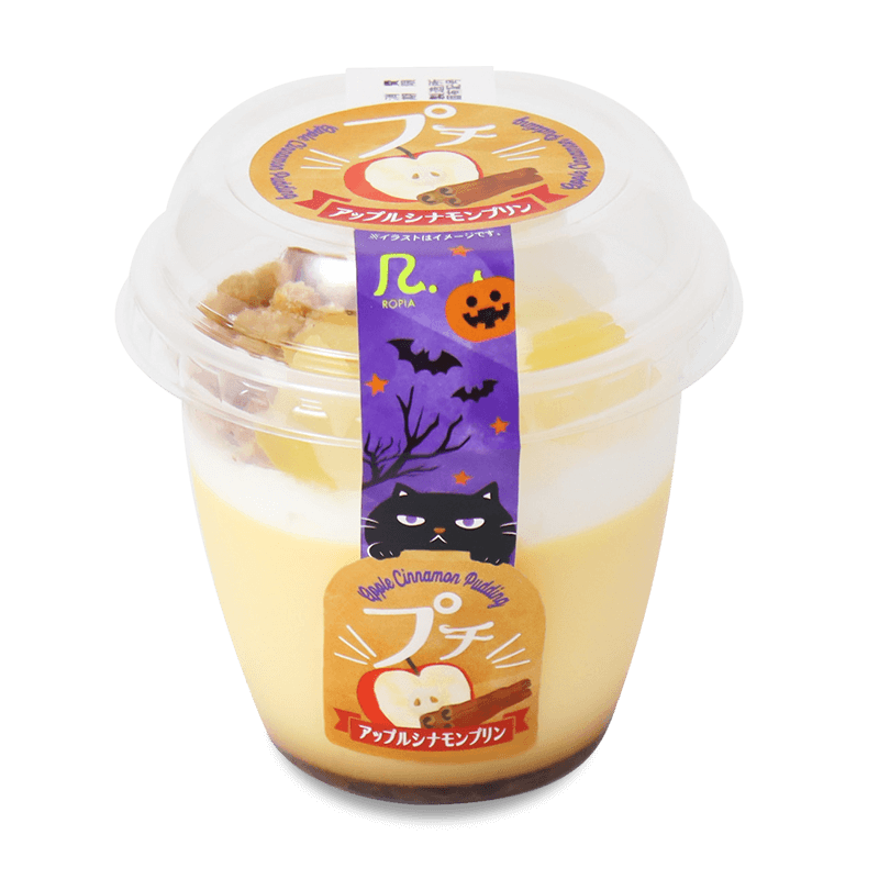 昔ながらの卵プリンに、北海道生乳入りホイップクリームを絞り、シナモンクランブル、リンゴダイスをトッピングしました。