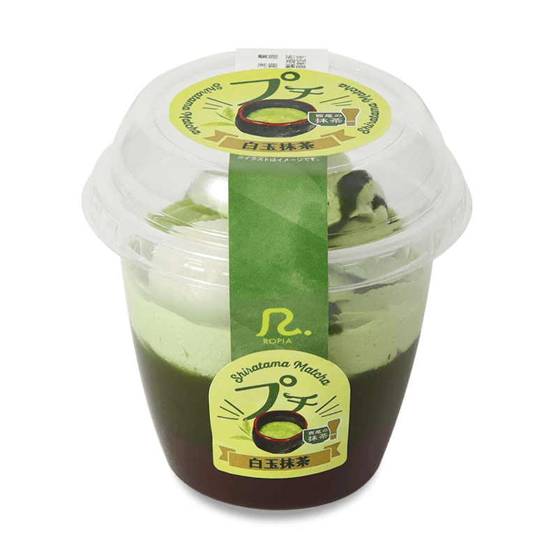 あんゼリーと西尾の抹茶ゼリーに、西尾の抹茶ホイップクリームを絞り、西尾の抹茶ソースをトッピングしました。