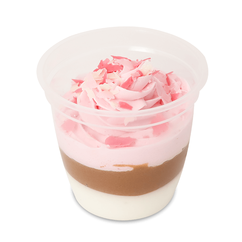 珈琲ムースとココアムースに、珈琲ホイップクリームを絞り、生チョコダイスをトッピングしました。