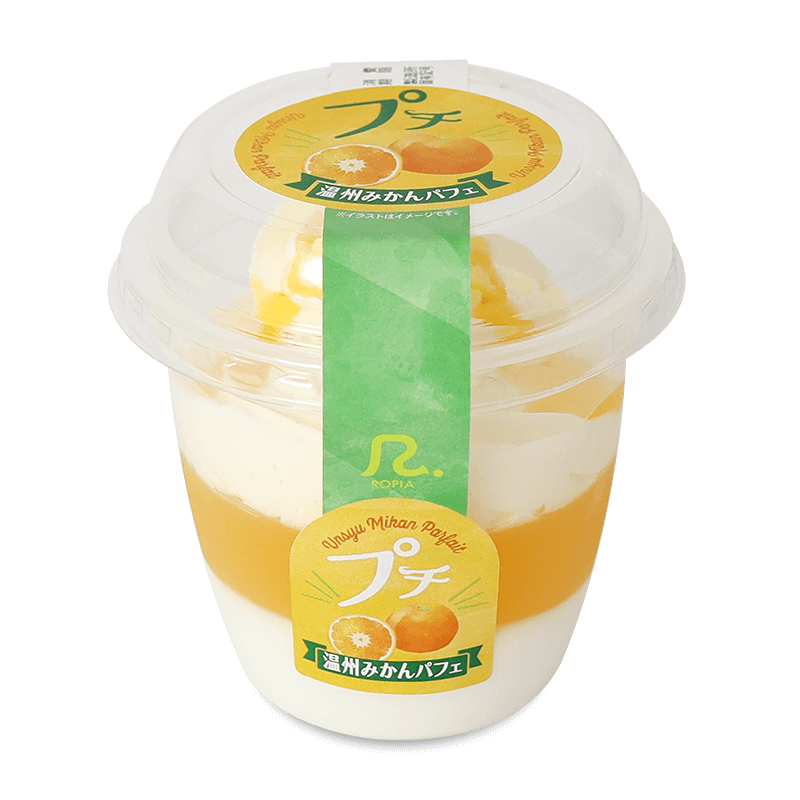 ミルクムースと温州みかんゼリーに、温州みかんホイップクリームを絞り、つぶつぶ食感が楽しいオレンジピール入り温州みかんソースをトッピングしました。
