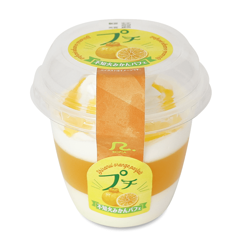ミルクムースと不知火みかんゼリーに北海道生乳入りホイップクリームを絞り、不知火みかんソースをトッピングしました。